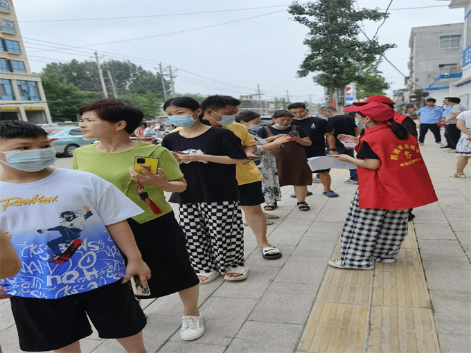 7月9日晚,唐河縣郭灘鎮(zhèn)啟動(dòng)全員核酸檢測以后,鎮(zhèn)團(tuán)委第一時(shí)間向返鄉(xiāng)大學(xué)生招募20名志愿者,同時(shí)來自各村的35名返鄉(xiāng)大學(xué)生在完成個(gè)人的核酸檢測后就地轉(zhuǎn)換身份,主動(dòng)請纓加入志愿隊(duì)伍,在進(jìn)行了簡單的統(tǒng)一培訓(xùn)后,7月10日就投入到了核酸檢測掃碼登記工作,在檢測現(xiàn)場引導(dǎo)和分流待檢人員,為年紀(jì)較大的人員、不會(huì)使用智能手機(jī)的群眾等提供登記指導(dǎo)和幫助,在核酸檢測現(xiàn)場構(gòu)筑起一道亮麗的“青春防線”。