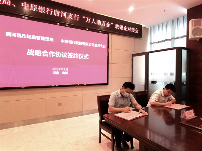 會上,唐河縣市場監(jiān)督管理局、中原銀行股份有限公司唐河支行結(jié)合部門職責(zé),分別介紹了近年以來扶持服務(wù)中小微企業(yè)發(fā)展的政策、采取的舉措、取得的成效,本著精誠合作、服務(wù)市場主體發(fā)展的原則,簽署了戰(zhàn)略合作協(xié)議,中原銀行就適合企業(yè)的部分金融產(chǎn)品做了詳細(xì)講解。
