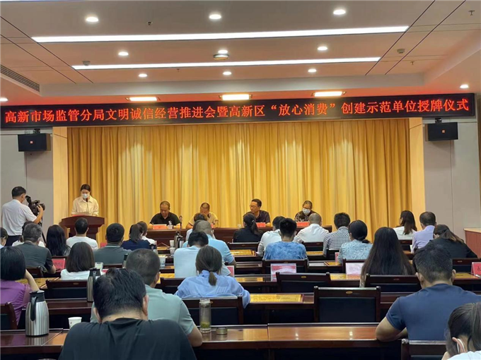 高新市場(chǎng)監(jiān)管局:召開文明誠信經(jīng)營推進(jìn)會(huì)暨“放心消費(fèi)”創(chuàng)建示范單位授牌儀式表