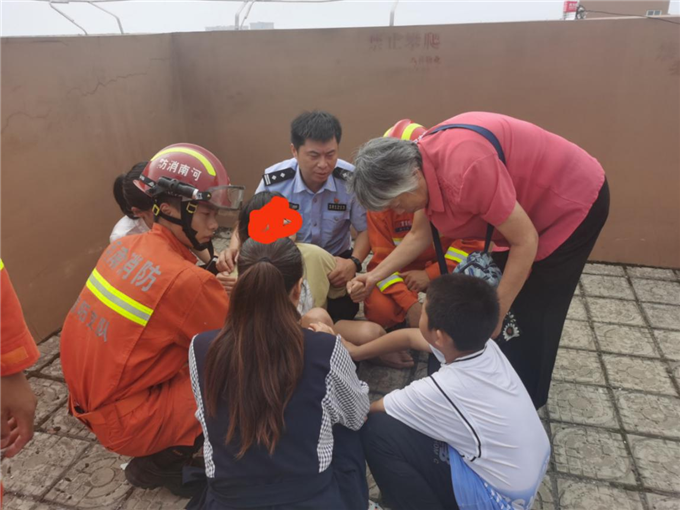 見女子放松警惕,民警按照計劃一邊繼續(xù)與女子溝通勸導分散其注意力,一邊和消防救援人員打眼色。就在此時剛好吹過一陣大風,女子身體發(fā)生劇烈抖動,民警和消防救援人員趁其低頭的瞬間,從兩個方向迅速上前,猛地飛撲到女子身邊,死死拽著女子的小腿和手臂,齊心協(xié)力將女子拉回安全地帶。
