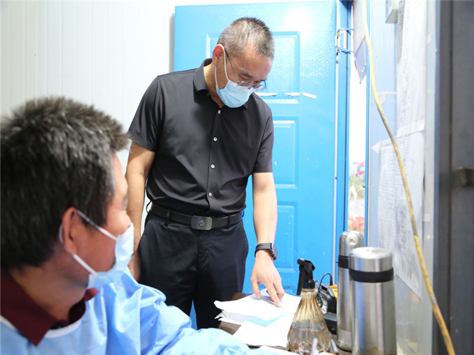 在執(zhí)勤卡點,陳永江先后查看了卡點設置、體溫檢測、掃碼登記等情況,與一線防疫工作人員親切交談,詳細了解防控人員配備、值班制度落實、防疫后勤保障等情況,并送來了礦泉水、方便面、火腿腸等慰問物資,向堅守在疫情防控第一線辛勤付出的工作人員表示誠摯的慰問,感謝他們的辛勤付出。同時提醒工作人員也要強化自我防護意識,在堅守崗位的同時確保自身健康安全,以良好的狀態(tài)投入到疫情防控工作中。