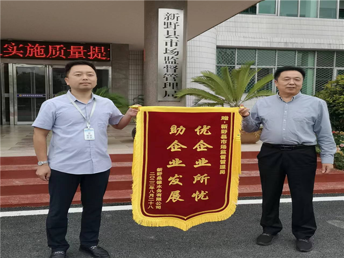 中新河南網(wǎng)9月5日電(李克選 何莉 陳紅云 徐書輝) 在這瓜果飄香的金秋時節(jié),9月1日上午新野縣桑德水務有限公司劉經(jīng)理一行把一面滾燙的錦旗贈送到該縣市場監(jiān)督管理局黨組書記、局長王書東的手中,感謝貴局積極授權桑德水務公司設立水表計量檢定站。這是該局在“觀念能力作風建設年”活動中“萬人助萬企”服務的一大碩果。