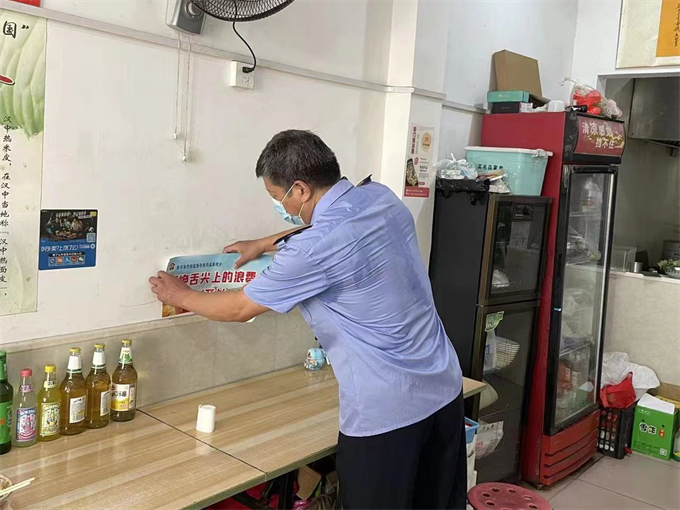 加大宣傳,營造氛圍。在公共場所顯著位置廣泛張貼“杜絕舌尖上的浪費”“光盤行動”“珍惜糧食”“公勺公筷”“吸煙有害健康”等公益宣傳畫,提高消費者節(jié)儉用餐、文明用餐意識,向市民普及吸煙以及二手煙帶來的危害。通過發(fā)放文明手冊,向居民、商戶宣傳文明城市創(chuàng)建知識,利用LED顯示屏滾動播放創(chuàng)文宣傳標語,充分調動商戶、群眾參與創(chuàng)文工作積極性,營造全民共同參與的良好氛圍。目前已發(fā)放“光盤行動”“禁止吸煙”等公益宣傳畫6000余份。