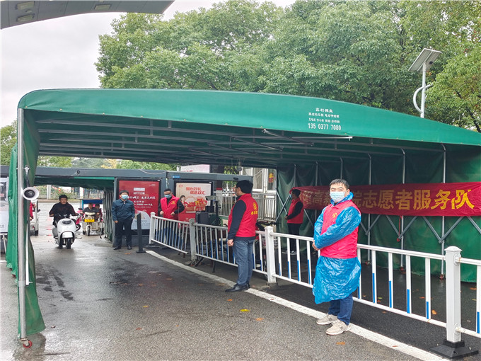 核酸檢測現場,志愿者們穿上“紅馬甲”,踏著陣陣細雨,披裝上陣,細心細致做好居民群眾工作,加強現場組織和秩序維護,引導居民分批次、分時段有序檢測,確保核酸檢測采樣工作高質高效完成,切實筑牢疫情防控安全防線。