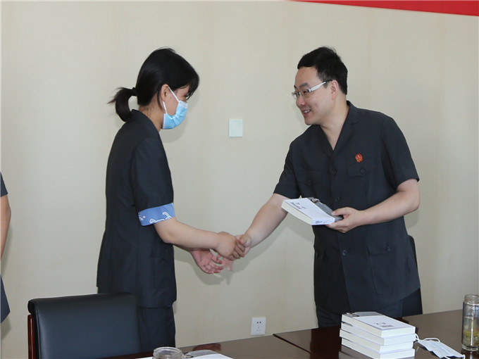 最后,院長白云及院領(lǐng)導(dǎo)向青年干警們贈送法律書籍。白云寄語青年干警:幸福是奮斗出來的,不要辜負(fù)自己的青春。